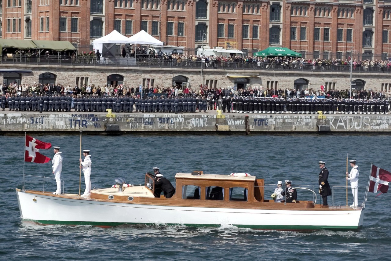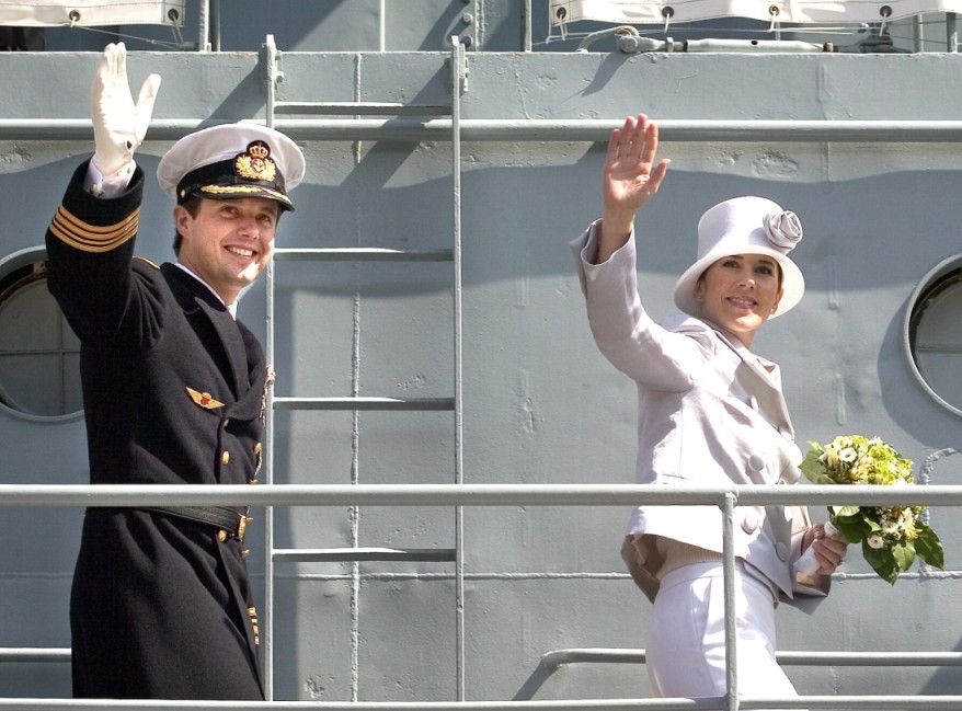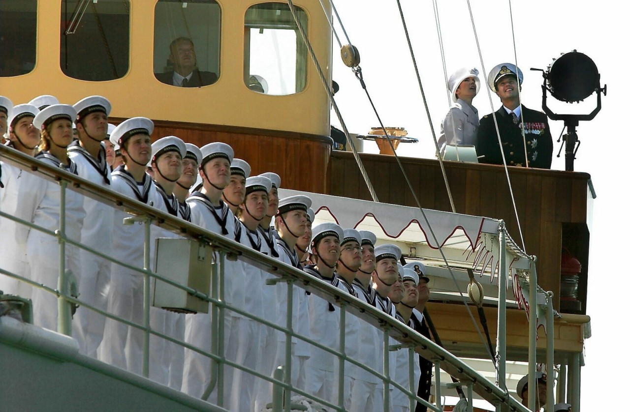 On continue avec les festivités pre-mariage de Frederik et Mary où le 5 mai 2004 ils ont assisté et présidé une parade militaire à bord du Dannebrog. Tous les corps militaires étaient représentés.....