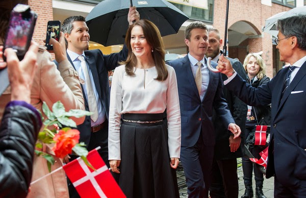 Je suppose que les princes inaugurent l'ouverture d'une marque danoise ? Belle tenue déjà vue pour Mary.Très chic Mary avec un ensemble porté plusieurs fois et qui lui va bien.