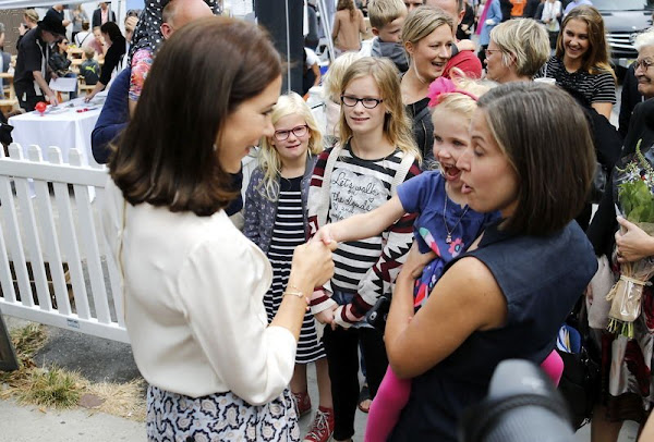 Mary toujours élégante, à l'aise avec tous, complice avec les enfants en se mettant à leur hauteur.