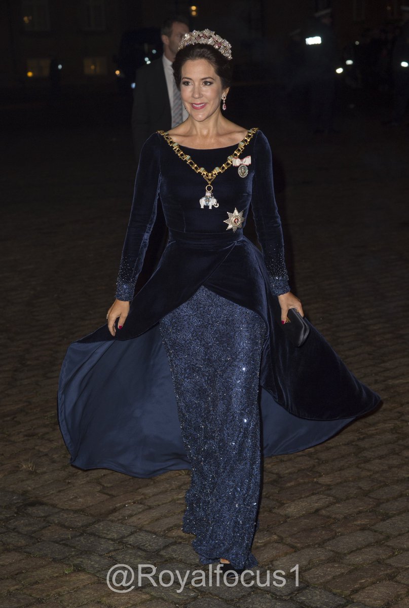 J'ai l'impression que la robe en velours bleu rajoutée à la jupe brillante vient de la cape bleu marine en velours que Mary a porté en 2008 sur une robe rose car l'intérieur de la doublure est exactement de la même couleur (vu sur d'autres sites).Que du reve il son sublime la reine est parfaite parure de rubis du tresor de 1840 et diademe de 1825 mary est saphir de beaute en cette nuit je vous presente mes voeux a tous je vous embrasse ...De belles tenues pour la reine et les princesses.Athena, en effet plus stricte surtout que je crois qu'en plus certains (ou tous) sont frappés de l'interdiction de quitter le royaume...Belle Mary, belle la reine, belle Marie aussi. Troi dame vraiment royales !! W le Danemark!Oui Solisa j'ai lu en effet que les bijoux de la Couronne ne peuvent être portés que par la Reine et ne peuvent en aucun cas sortir du royaume donc lorsque la Reine voyage elle ne peut emporter que ses propres bijoux et elle ne peut donc pas les "prêter" à ses belles filles.Ce serait un article intéressant Florian que de refaire un point sur les diadèmes et autres bijoux , ceux sues princesses et la reine possèdent en propre et peuvent donc porter hors Danemark et ceux qui doivent rester sur le territoire . Merci ! Excusez moi si cela a déjà été fait. Si oui je veux bien la référence de votre article .Le public n"est plus sur les escaliers derrière la presse. 2015 et ses horreurs ont changé les choses.Ecrire un commentaire
