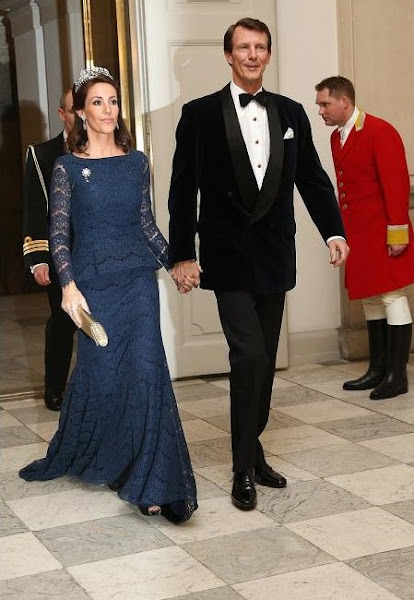 Bien raison Mamy 24 cette robe est plus légère que les robes de dentelles, plus aérienne avec une belle encolure et son dos nu. Je suis persuadé que la doublure est interchangeable, à suivreQue la reine est belle dans sa robe rouge! toutefois son sourire est en demi-teinte et heureusement qu'elle est bien entourée.Bonne fête à la princesse Bénédicte.