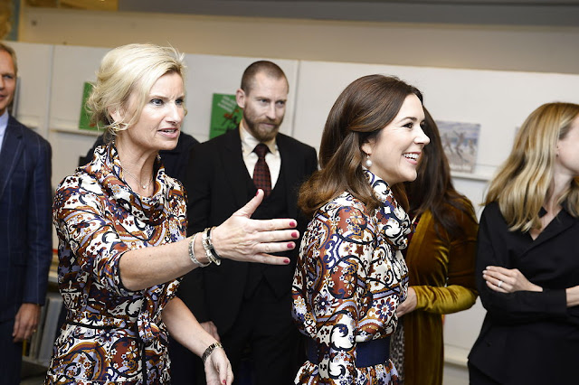 J'ai oublié le chignon de l'organisatrice est un gros plus pour la tenue...Finalement l'imprimé ne me déplaît pas et j'aime beaucoup les accessoires de Mary : ceinture, pochette et superbes escarpins. Le bas de la robe est asymétrique - ce n'est pas heureux - mais Mary s'en sort mieux (pour moi) que l'organisatrice qui porte des chaussures trop lourdes. Altesse, je ne rejette pas le motif de votre robe, mais si vous laissez cette dernière au fond du dressing, personne ne le regrettera.Cette robe est particulièrement laide, mais Mary sauve la mise grâce à la ceinture et aux escarpins.Je viens de regarder la vidéo, Mary fait un discours charmant, avec beaucoup de simplicité et de chaleur, dans un danois parfait. Du moins, c'est ce qui transparaît de sa voix, de sa gestuelle, de son sourire (je ne comprends pas le danois, mais je peux lire les autre signes). Gentillesse et simplicité émanent d'elle.Mary sort de ce faut pas avec elle sourire...robe dont l imprimé ne me plait pas trop. Ce sera mieux la prochaine fois.Vous êtes une perle Barbara si vous savez lire les autres signes .... c'est vrai qu'elle doit être aussi gentille que vousroyal mar.bar : je suis loin d'être une perle, très loin s'en faut, hélas... mais, comme tout un chacun, j'induis certaines qualités de la gestuelle de Mary, de la douceur de sa voix, de son sourire plutôt agréable et pas artificiel genre rictus. Tout cela se lit dans cette courte vidéo.Amusant de se retrouver avec la même robe qui est mieux portée par Mary et dont les escarpins assortis affinent l'ensemble.Dans tous les cas c est une énorme publicité pour la couturière.Ce qui m'etonne c'est le peu de tenue des 2 personnes blondes: jamais je n'oserais me presenter avec une doudoune et en rangers. Surtout pour un événement de mode ...Je n'aime pas du tout cette robe imprimée, ni la couleur ni la forme; en général j'ai remarqué que les robes imprimés ou larges ne vont pas à Mary enfin c'est mon avis!Ecrire un commentaire