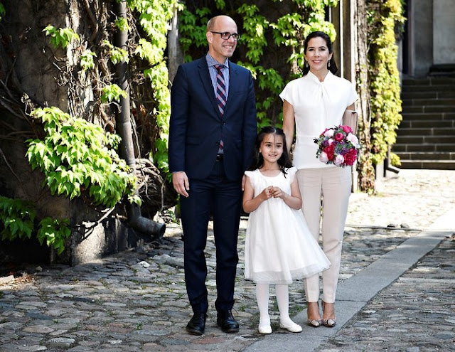 Très jolie tenue et coiffure... J'adore son haut ! Athena la princesse est chaussée selon vos goûts ;).Mary ' recycle ' régulierement ses jolies chaussures ' passe-partout' ! Elle est fraiche et gracieuse à la fois ! Elle est heureuse de remettre des bourses aux deux Australiens, ses ex-compatriotes.Infatigable princesse qui enchaîne avec professionnalisme et sourire des activités très différentes les unes des autres.Elégante, souriante, bref, parfaite comme toujours.Je préfère cette tenue a la précédenteElle n à pas arrêté ..j aime aussi cette tenueFélicitations aux deux étudiants.Mary et la fillette sont élégantes.