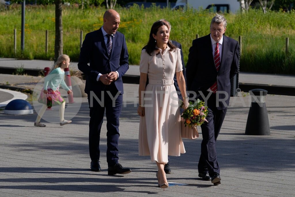Jolie robe pour Mary pour honorer ce rendez vous.toujours parfaite!! .je pense que les ballerines "chanel" tassent la silhouette car la robe est trop longue pour ce genre de chaussures .avec ces chaussures ;soit une robe droite "trois trous" ou jupe droite ,les deux longueur genoux ou alors le pantalon cigarette 7/8 èmeMary a une silhouette parfaiteJ adore cette robe. Mary est superbe avec.Très belle robe, comme toujours le bon choix pour la bonne occasion . Ce couple est vraiment magnifique , très moderne. , sympathique .Robe fraîche et féminine ... Evidemment, je la préfère portée avec les escarpins python, plutôt qu'avec les ballerines, fussent-elles des Chanel ...